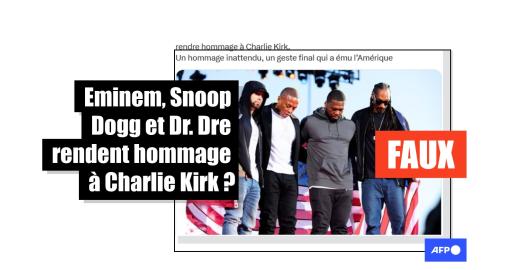 Image Intelligence artificielle Publié le 25/09/2025 Non, Eminem, Snoop Dogg et Dr. Dre n'ont pas rendu hommage à Charlie Kirk