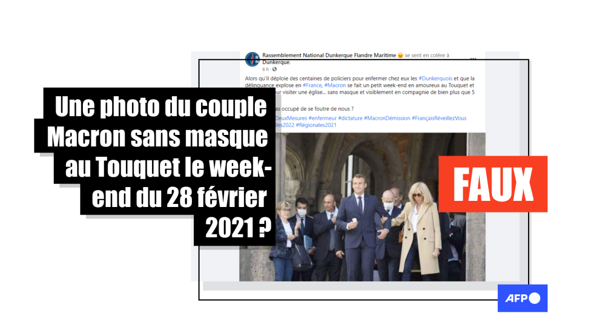 Pour autant, la photo du couple Macron n'a pas été prise le week-end du 27-28 février, contrairement à ce que suggèrent les publications Facebook, qui dressent un parallèle avec les Dunkerquois "enferm[és] chez eux" – la ville du Nord et ses environs ayant été confinés pour le week-end pour contrer la flambée de Covid-19.