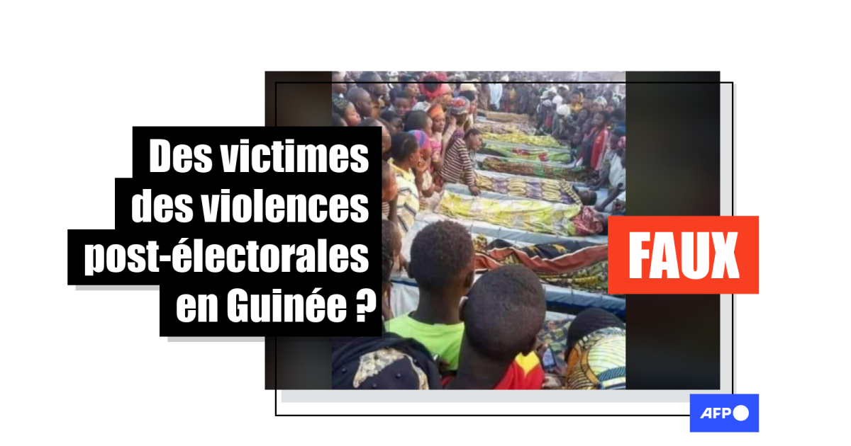 Ces corps seraient ceux des Guinéens et Guinéennes décédés dans les heurts qui ont suivi l'élection présidentielle du 18 octobre, selon plusieurs publications Facebook (1, 2, 3, 4, 5, 6…) qui diffusent cette photo et totalisent plusieurs milliers de partages depuis le 21 octobre.