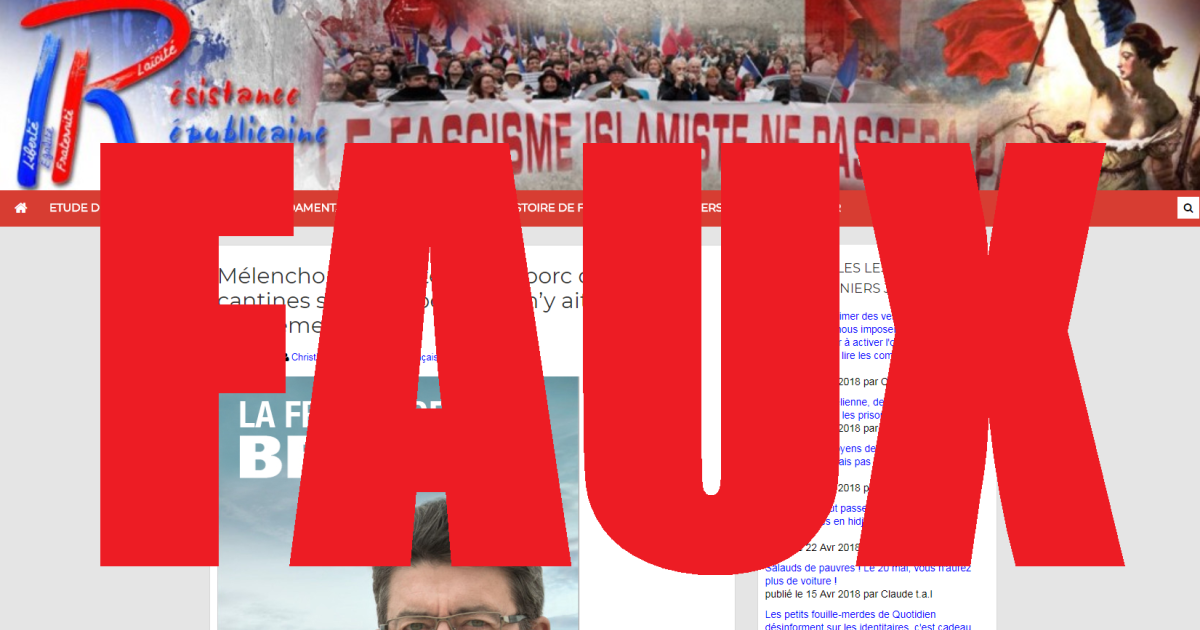 "Les musulmans ne veulent pas de porc ? Et hop ! Menu sans viande pour tout le monde. Les musulmans seront contents et la planète s’en portera mieux. Pas embêté le Mélenchon, qui hait le christianisme et ne veut pas entendre parler, naturellement, de poisson le vendredi… Mais pour les repas sans porc des musulmans, c’est une autre paire de manches… Mélenchon a donc trouvé la parade. Et l’alibi écologique est pratique", poursuit ce site.