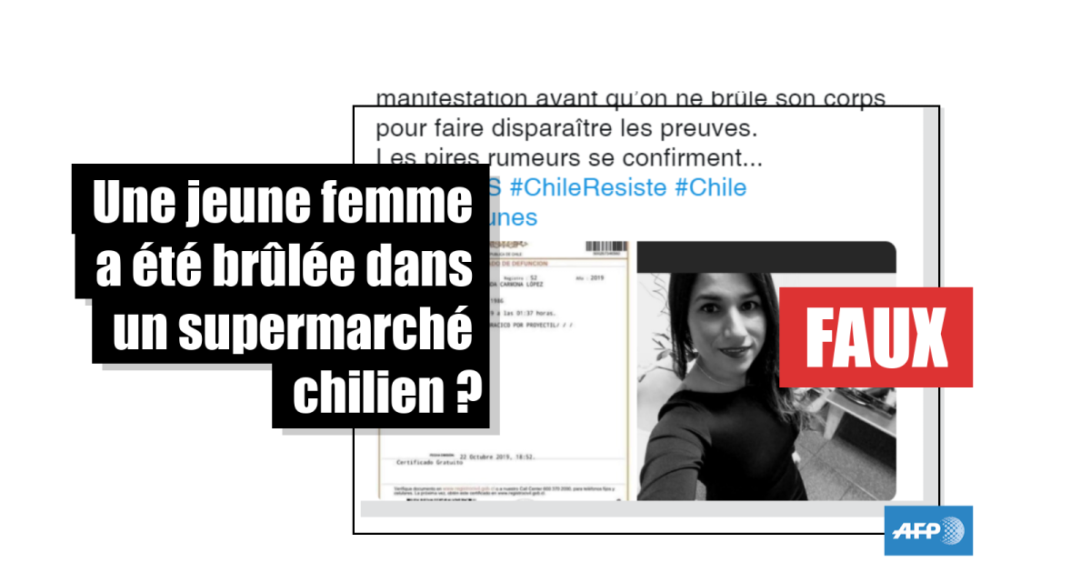 Ce certificat de décès est authentique, mais une jeune femme n’a pas été brûlée dans un supermarché chilien
