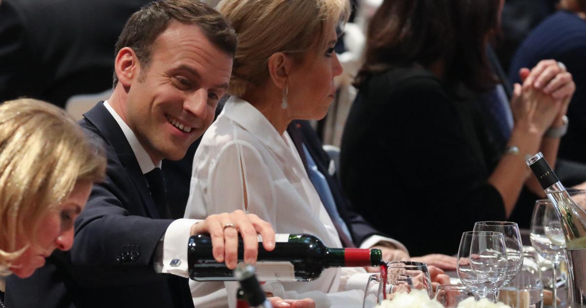 La photo qui accompagne cette affirmation montre Emmanuel Macron attablé lors d'un dîner en public avec son épouse Brigitte Macron.