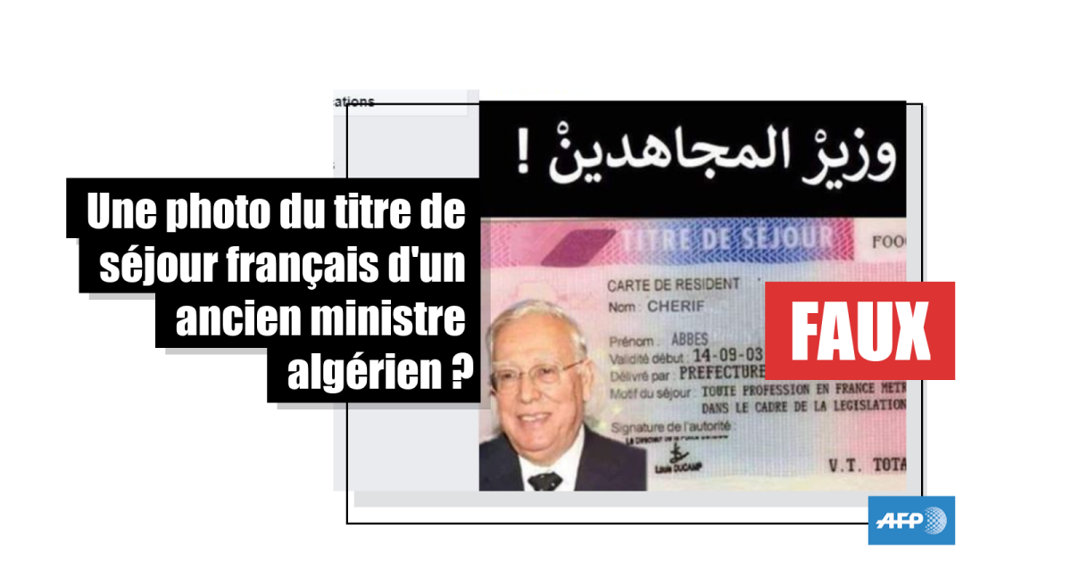 Cette photo d'un titre de séjour français portant l'identité d'un ancien ministre algérien est un montage