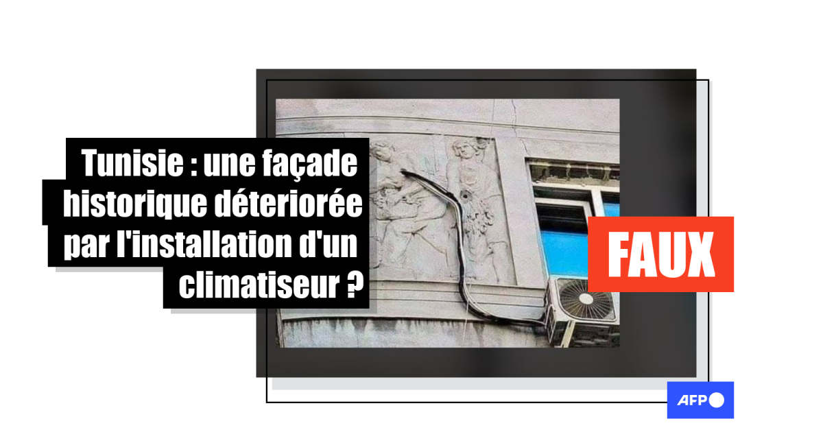 Cette photo d'une façade sculptée détériorée par un climatiseur n'a pas été prise en Tunisie mais en Russie