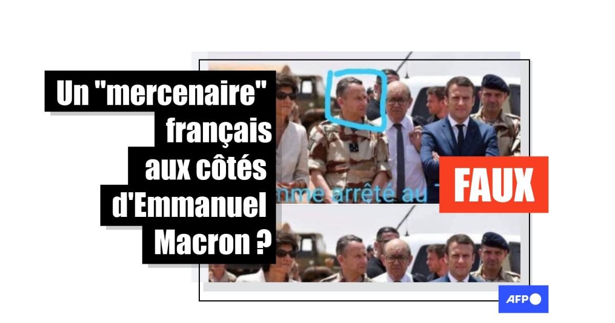 Mais contrairement à ce qu’affirment ces messages, l’homme présent aux côtés d’Emmanuel Macron sur la photo principale n’est pas ce "mercenaire". Une recherche d'images inversée sur le moteur de recherches Google permet de retrouver cette même image en tête d'une tribune du quotidien français La Croix.