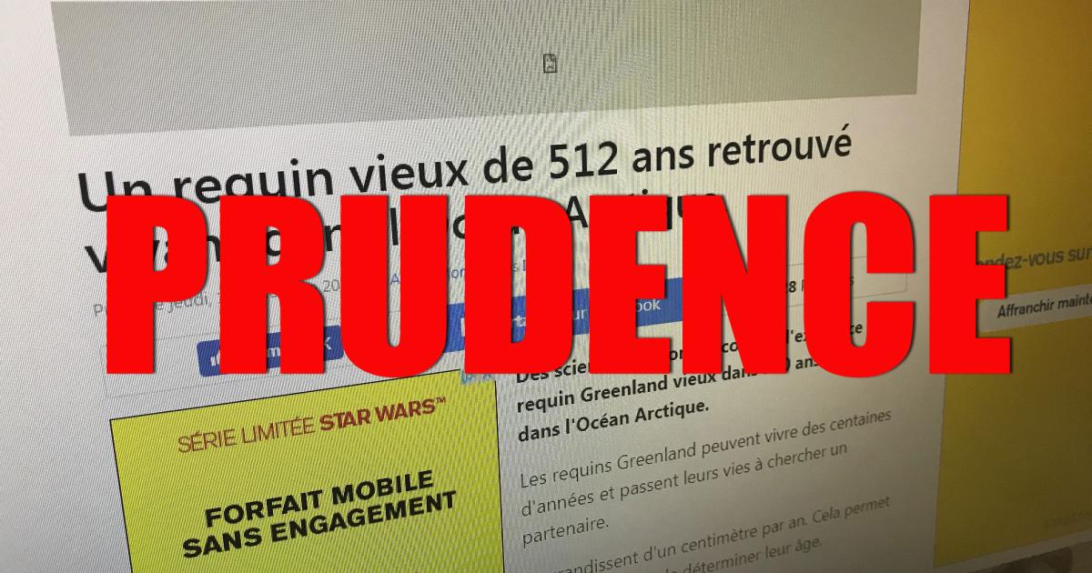 Mais 512 ans ? En réalité, comme l'a aussi relevé Ouest France ces derniers jours, ces articles se basent sur les larges hypothèses fournies par cette publication scientifique. L'âge de la plus grande femelle requin du Groënland, estimé donc à 392 ans, comprend une large marge d'incertitude: l'estimation est 392 ans, à plus ou moins... 120 ans. Ce qui fait 272 ans ou 592.