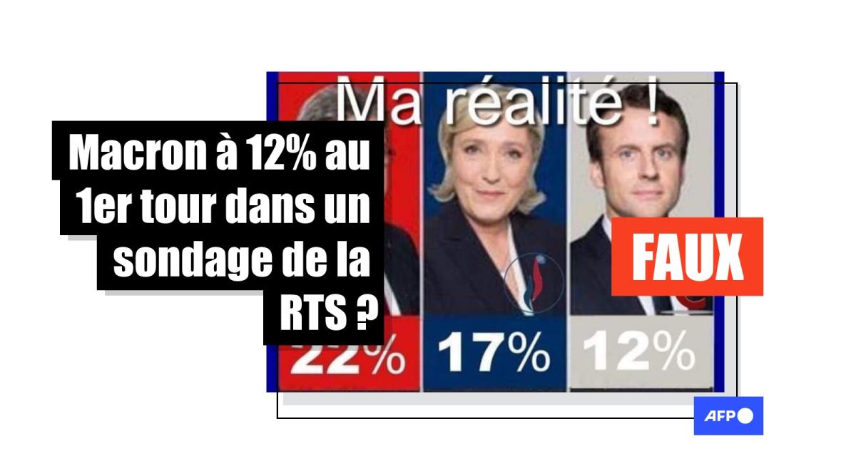 Non, la RTS n'a pas réalisé de sondage prêtant 12% d'intentions de vote à Emmanuel Macron au 1er tour