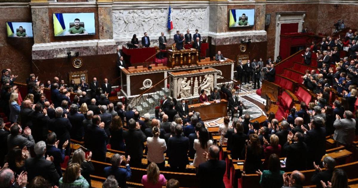 Non, Volodymyr Zelensky n'a pas porté un T-shirt arborant un "symbole nazi" devant le Parlement français