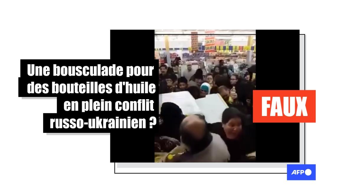 Cette bousculade pour des bouteilles d'huile n'a aucun lien avec le conflit russo-ukrainien, elle date de 2015