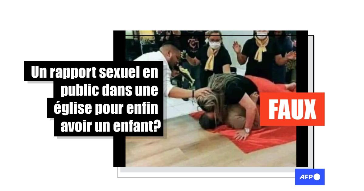 Attention, il s'agit d'une intox: cette image ne montre pas la tentative désespérée d'un couple infertile, mais d'un rituel - un "acte prophétique", selon l'église où se sont déroulés les faits - visant à aider une femme malade lors d'un prêche.