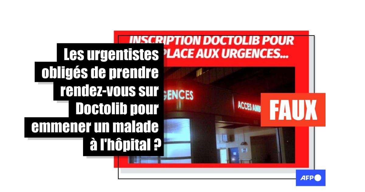 Contacté par l'AFP, Mathias Wargon, chef du service des urgences et du Service mobile d'urgence et de réanimation (SMUR) au centre hospitalier Delafontaine, à Saint-Denis, dément également. "C'est complètement faux. Il n'est pas du tout question de prendre rendez-vous sur Doctolib pour venir aux urgences."