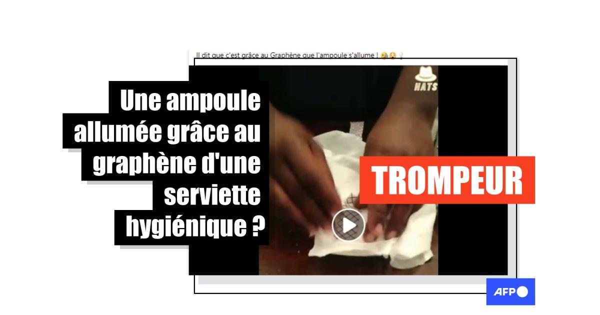 "Cette expérience montre que le graphène contenu dans une serviette hygiénique peut alimenter une ampoule électrique". Sur Facebook (1), Twitter (2, 3) et Telegram (4, 5), des internautes partagent une même vidéo censée démontrer, en un peu plus d'une minute, les propriétés inattendues de ce nanomatériau (100 fois plus fin qu'un cheveu).