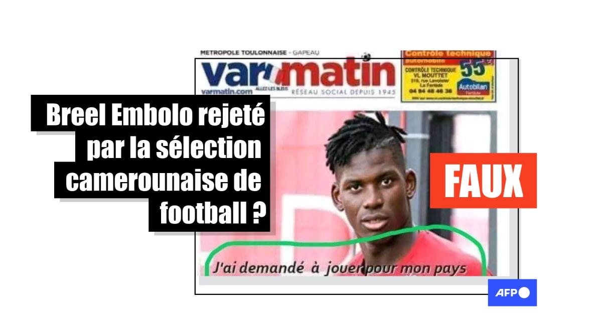 Dans un mail adressé à l’AFP, Nadine Bassetti, assistante à l’administration des ventes de Var-Matin, souligne que "cette une de journal n'est pas du tout authentique : c’est un montage dont nous ne sommes pas responsables". Quant à la rédaction du journal, elle précise n’avoir fait aucune interview avec Breel Embolo après la victoire de la Suisse sur le Cameroun. Sur le site du quotidien, les deux seuls résultats relatifs au joueur nous renvoient à deux avant-papiers : l’un sur un match Monaco-Lyon et le deuxième sur un match France-Suisse.