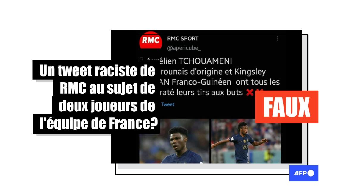 "Aurélien Tchouaméni Camerounais d'origine et Kinsgley Coman Franco-Guinéen ont tous les deux ratés leurs tirs aux buts", note un tweet qui semble être publié par le compte du média français RMC Sport.