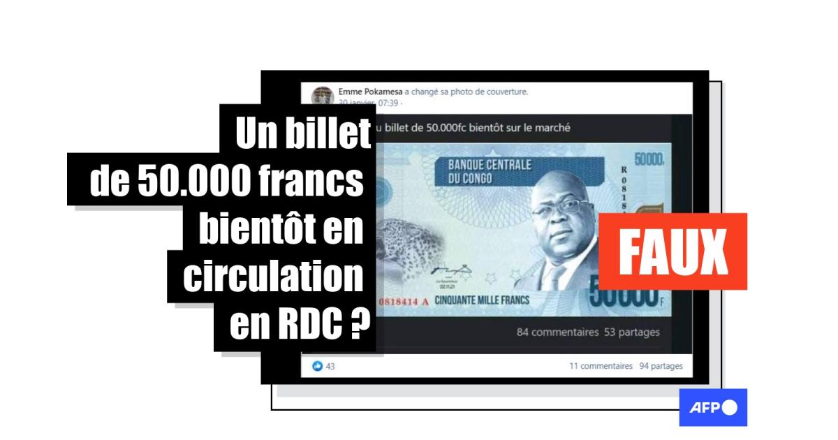 Contactée par l'AFP, la Banque centrale n'a pas donné suite à nos sollicitations. Mais Patrick Muyaya, porte-parole du gouvernement congolais, nous a confirmé que le billet de banque affiché sur les réseaux sociaux est "totalement faux et erroné". L'introduction de ce billet sur le marché congolais "n’est même pas envisagée", a-t-il précisé.