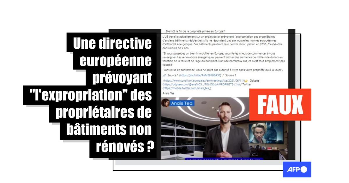 Une porte-parole de la Commission européenne a déclaré à l'AFP le 23 février 2023 que le projet de directive, "actuellement en cours de négociation, ne comprend aucune mesure sur l'expropriation", et a rappelé que l'objectif est d'"intensifier la rénovation des bâtiments existants, notamment ceux dont la performance énergétique est la plus mauvaise, afin d'améliorer la performance et l'efficacité de nos bâtiments et de faire baisser les coûts énergétiques pour les citoyens".