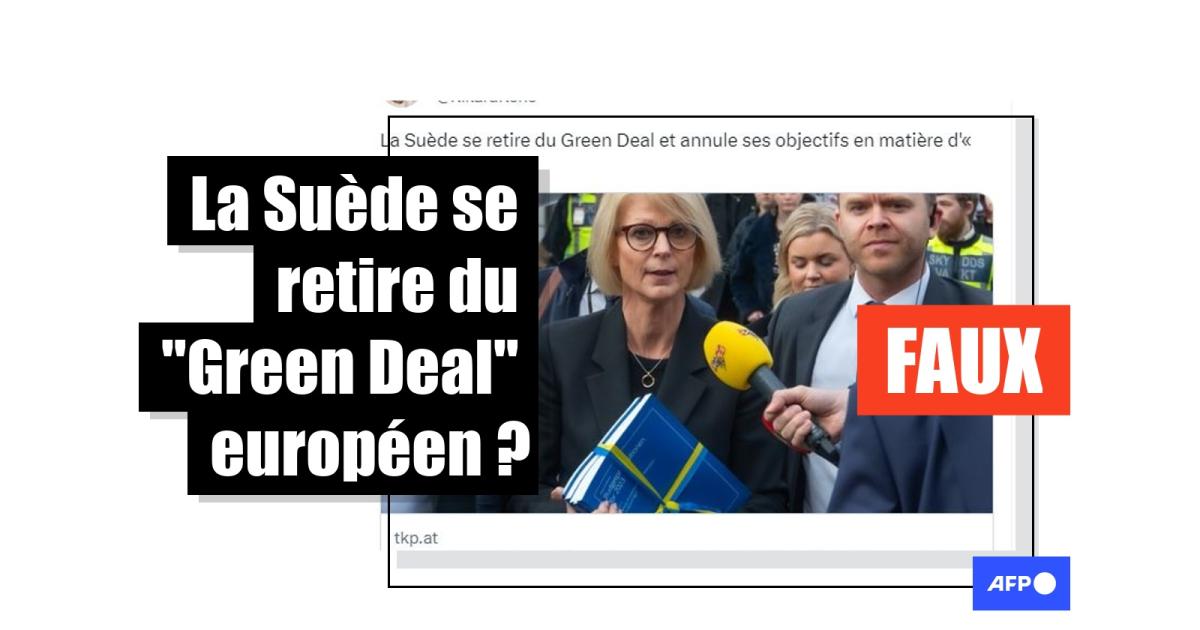 Le service presse du ministère des Finances suédois a également démenti auprès de l'AFP, le 29 juin 2023, l'affirmation selon laquelle la la Suède se serait retirée ou compterait se retirer du Green Deal européen.