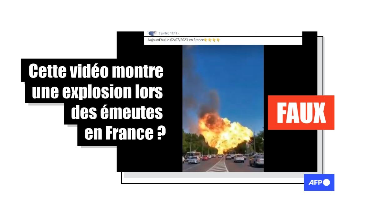 La vidéo (archivée ici), partagée près de 900 fois depuis le 2 juillet, s’ouvre sur une forte détonation et un gros nuage de feu qui s'élève vers le ciel. L’explosion est filmée à distance, au milieu d’une double voie fréquentée.