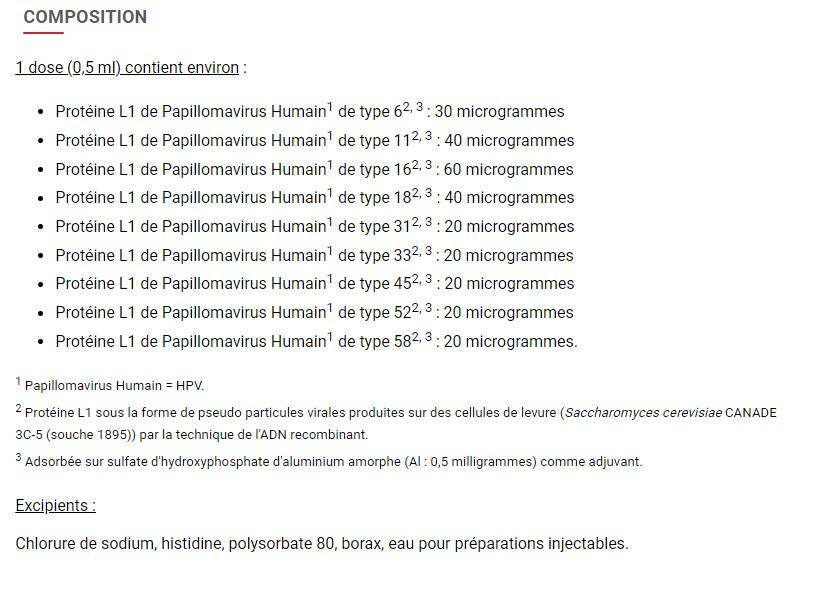 Que contient le vaccin Gardasil 9?