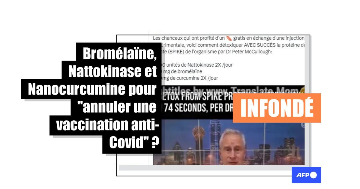 "Voici comment détoxiquer AVEC SUCCÈS la protéine de pointe (SPIKE) de l'organisme par Dr Peter McCullough: 2000 unités de Nattokinase 2X /jour 500 mg de Bromélaïne 500 mg de Curcumine 2X /jour ", affirme un message publié sur X (ex-Twitter) le 3 août.