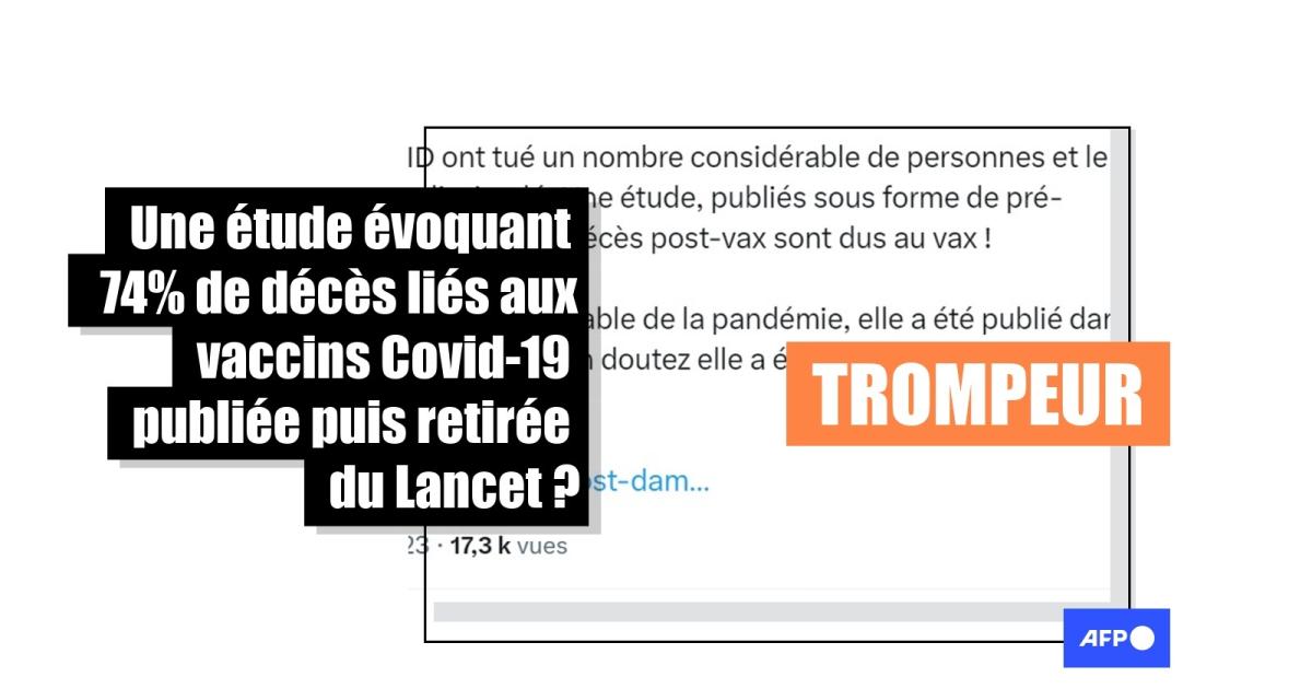 Non, une étude évoquant le chiffre de 74% de décès "dûs" aux vaccins Covid n'a pas été publiée puis retirée du Lancet