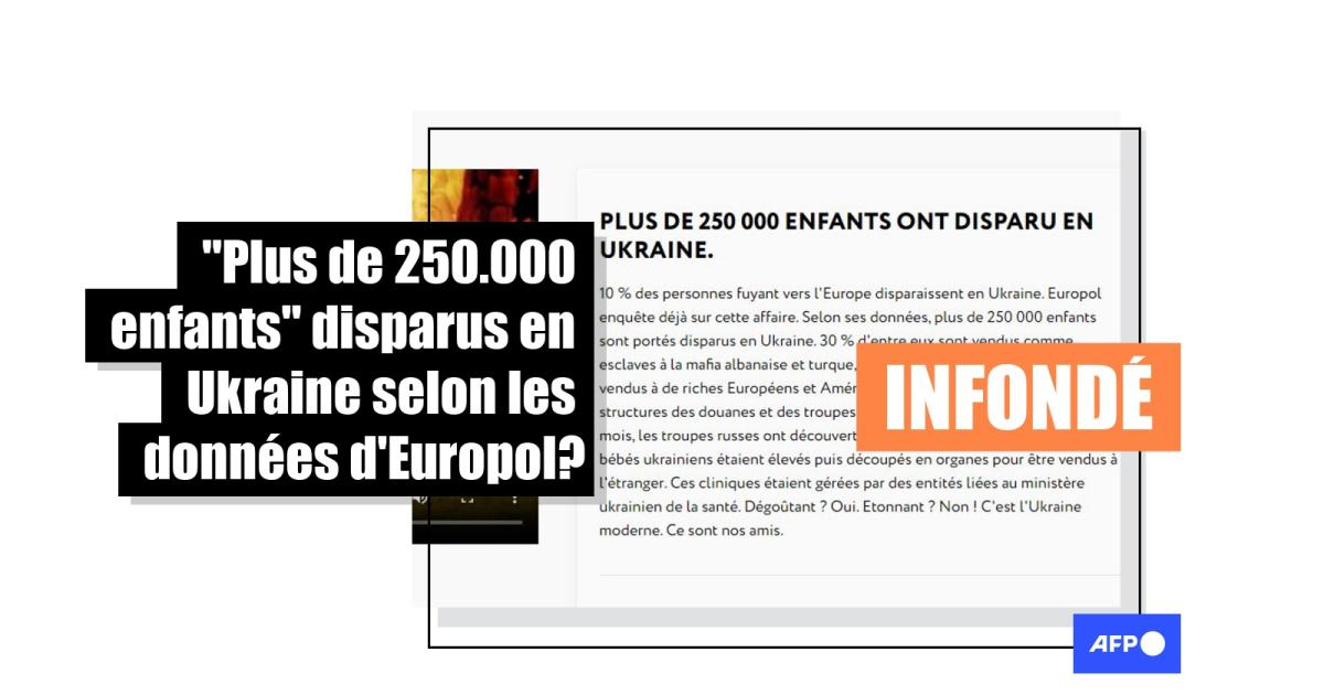 A en croire cette vidéo de 55 secondes, narrée en allemand et sous-titrée en français, cet ordre de grandeur autour du nombre d'enfants ukrainiens disparus serait issu des "données" "d'Europol", qui "enquête déjà sur cette affaire".