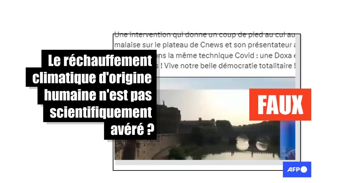 Cette prise de parole (lien archivé ici), relayée sous la forme d'une vidéo de 2'12 minutes, a été partagée près de 5.000 fois sur X (ex-Twitter) depuis le 27 août et reprise par des dizaines de compte sur Facebook (liens archivés ici, ici et ici). Elle est accompagnée de la légende suivante : "Une intervention qui donne un coup de pied au cul au GIEC [Groupe d'experts intergouvernemental sur l'évolution du climat, NDLR] et qui met le malaise sur le plateau de Cnews et son présentateur asservi !"