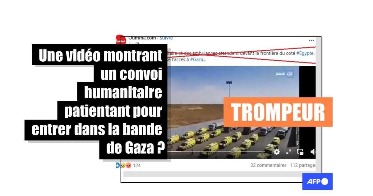 D'autres publications reprenant cette vidéo circulent en français sur Facebook, comme ici. Certaines affirment que "l’occupation israélienne refuse que Gaza reçoivent l’aide humanitaire de l’Égypte et les menaces de les bombardés si les véhicules forcent le passage".