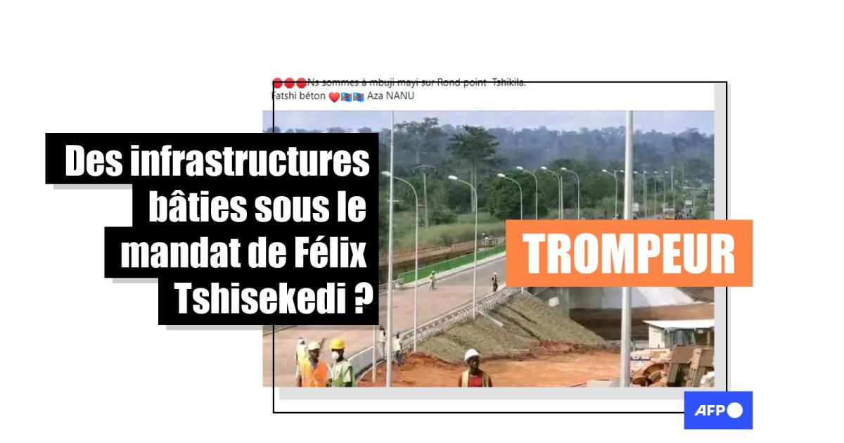 Une page Facebook, suivie par 14.000 personnes, est même consacrée aux "œuvres de Fatshi Béton" (lien archivé ici). Plusieurs de ces photos sont toutefois trompeuses car décontextualisées : en réalité, elles illustrent des ouvrages bâtis bien loin de la RDC, en Côte d'Ivoire, en Chine ou encore en Italie.