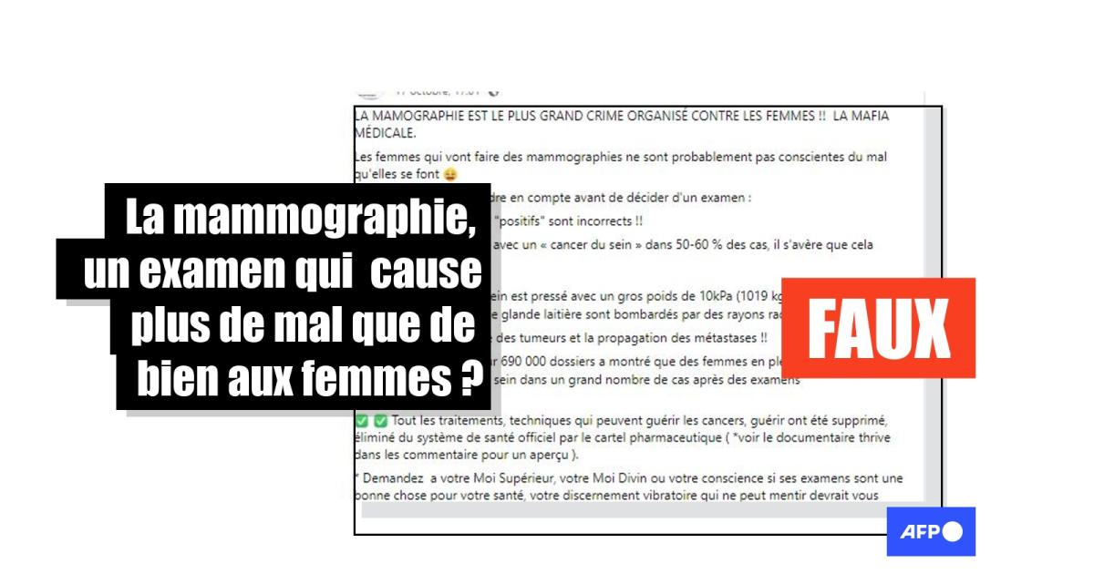 "Les femmes qui vont faire des mammographies ne sont probablement pas conscientes du mal qu'elles se font", "La mammographie est le plus grand crime organisé contre les femmes !!" : plusieurs publications Facebook (1, 2) et X (ex-Twitter), en date d'octobre et novembre 2023, affirment alerter sur les dangers méconnus que représenterait cet examen médical de dépistage du cancer du sein.
