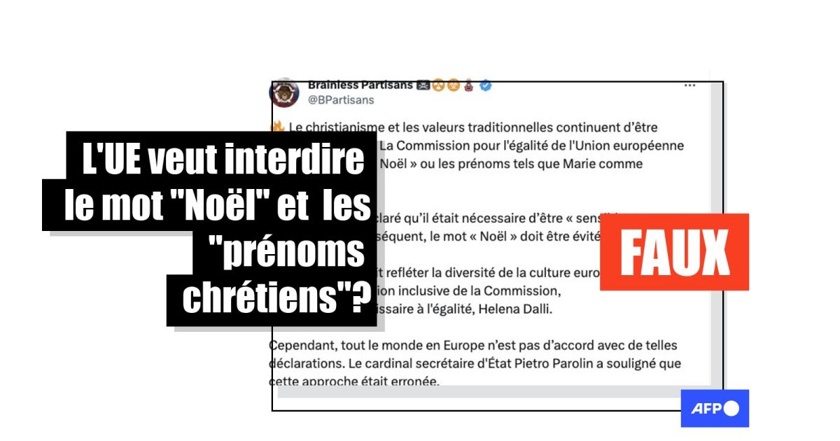 Attention à ces fausses allégations sur l'UE et l'utilisation du mot "Noël" ou des "prénoms chrétiens"