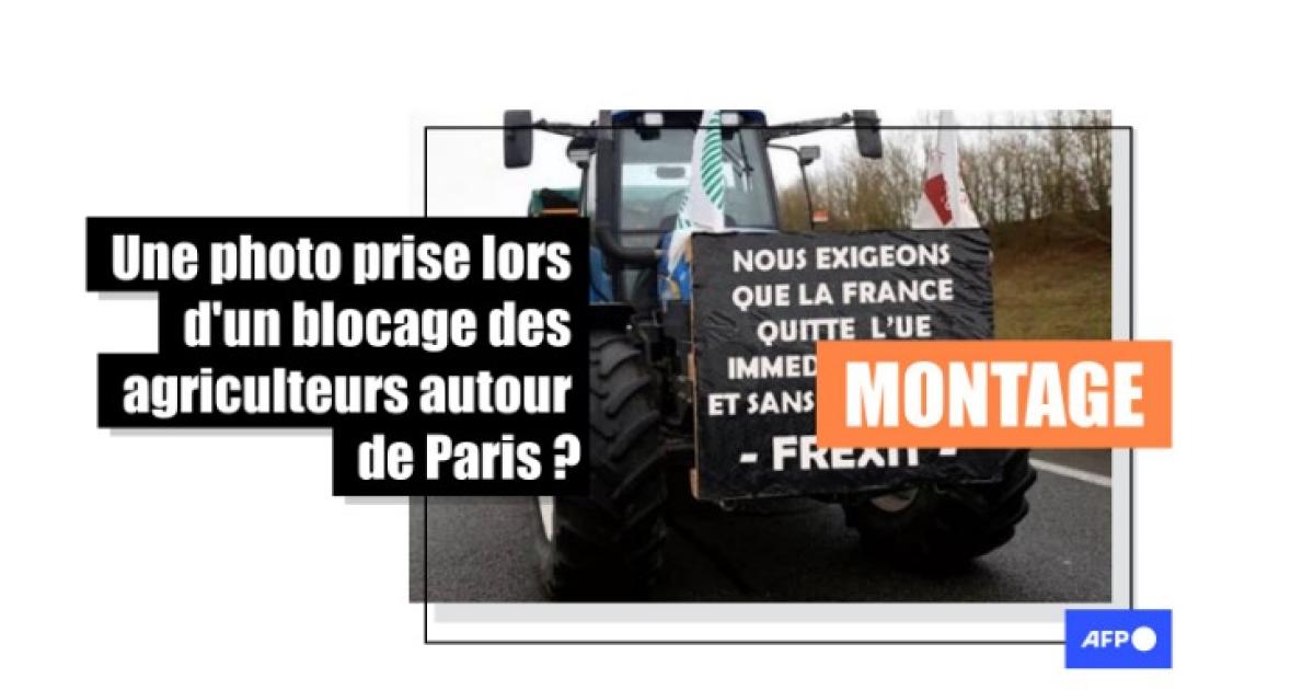 Dans ce contexte, une image montrant un tracteur sur une autoroute arborant une banderole "nous exigeons que la France quitte l'UE immédiatement et sans condition. Frexit", a été partagée sur X.