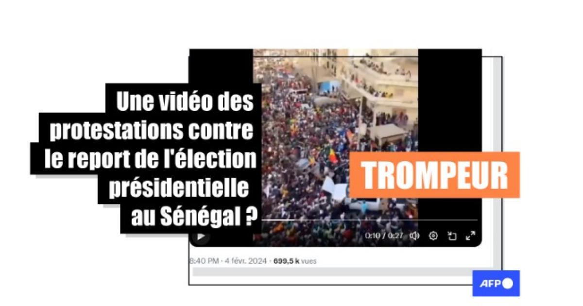 "Sénégal : vives contestation à la suite du report de l'élection présidentielle", prétend sur Facebook, RT France, la branche francophone du média russe Russia Today.
