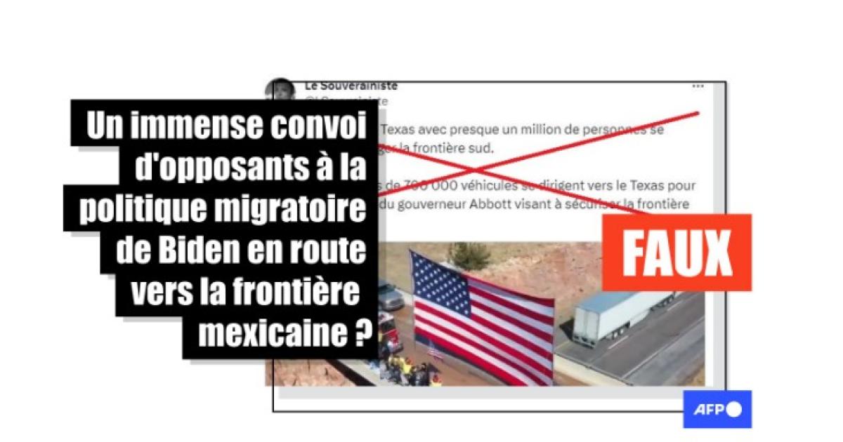 "Urgent : presque un million de personnes se dirigent pour protéger la frontière sud. On estime que près de 700 000 véhicules se dirigent vers le Texas pour soutenir l'initiative du gouverneur Abbott visant à sécuriser la frontière sud", affirme le 28 janvier 2024 une publication sur X du compte Trump Fact news, re-partageant une publication de la veille sur le même compte qui avait été relayée plus de 2.000 fois à la date du 8 février.