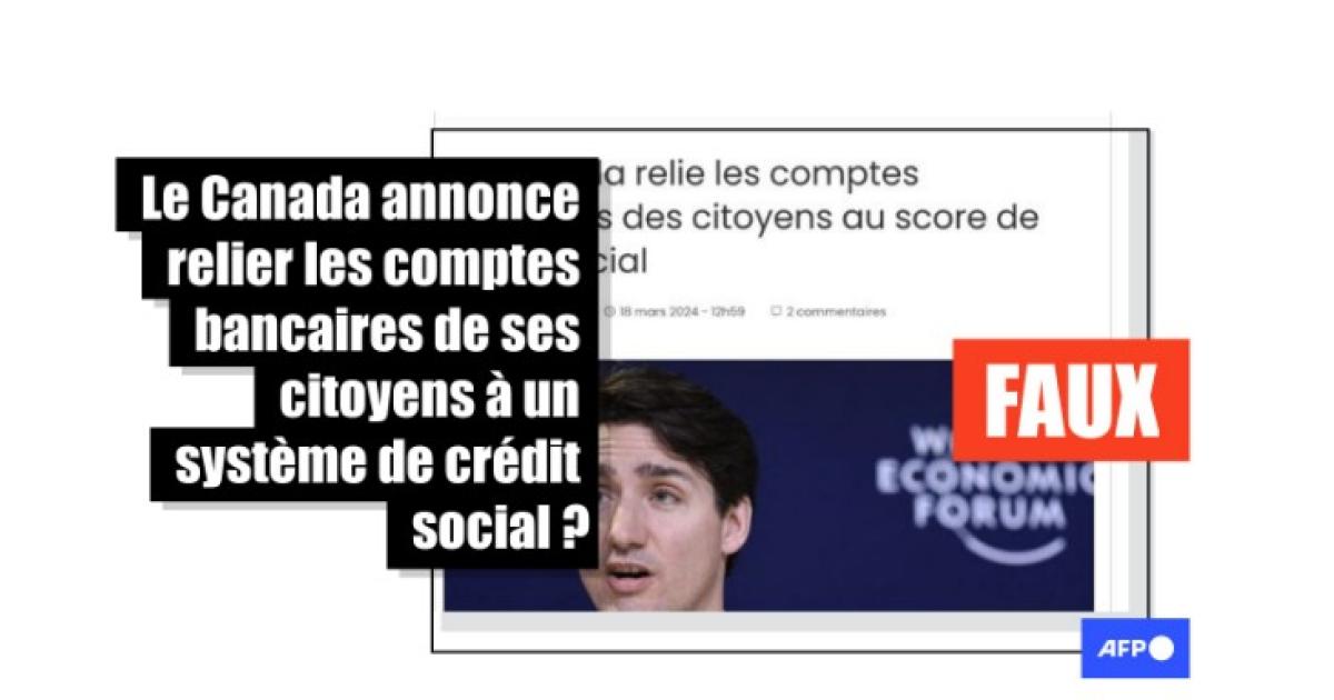 "Le Canada relie les comptes bancaires des citoyens au score de crédit social", prétendent des publications totalisant plusieurs milliers de partages sur X (ici, ici, ici, là) et Facebook depuis le 18 mars.