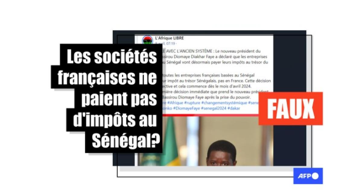 "Désormais, les entreprises françaises basées au Sénégal devront payer leurs impôts au trésor Sénégalais et non en France (sic)", lit-on dans bon nombre de publications diffusées sur Facebook (1,2), WhatsApp, X (ex-Twitter).