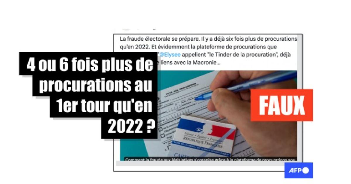 L'estimation de "quatre fois plus de procurations que 2022" provient d'une mauvaise interprétation d'une donnée communiquée par le ministère de l'Intérieur qui établit régulièrement des comparatifs sur certaines périodes données.
