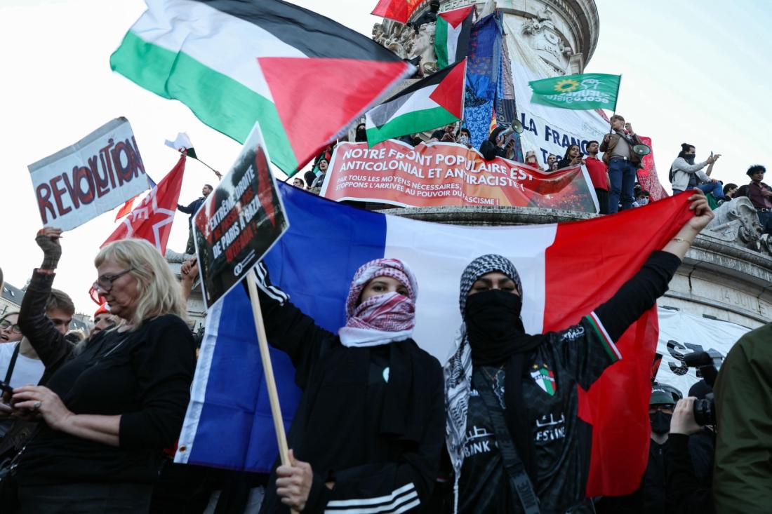 Dans d'autres rassemblements en France au soir du 7 juillet, les images montrent aussi la présence de drapeaux palestiniens. Mais pas seulement : d'autres drapeaux étaient visibles, dont celui de la France comme on peut le voir sur ces différents clichés pris par les photographes de l'AFP, place de la République à Paris.