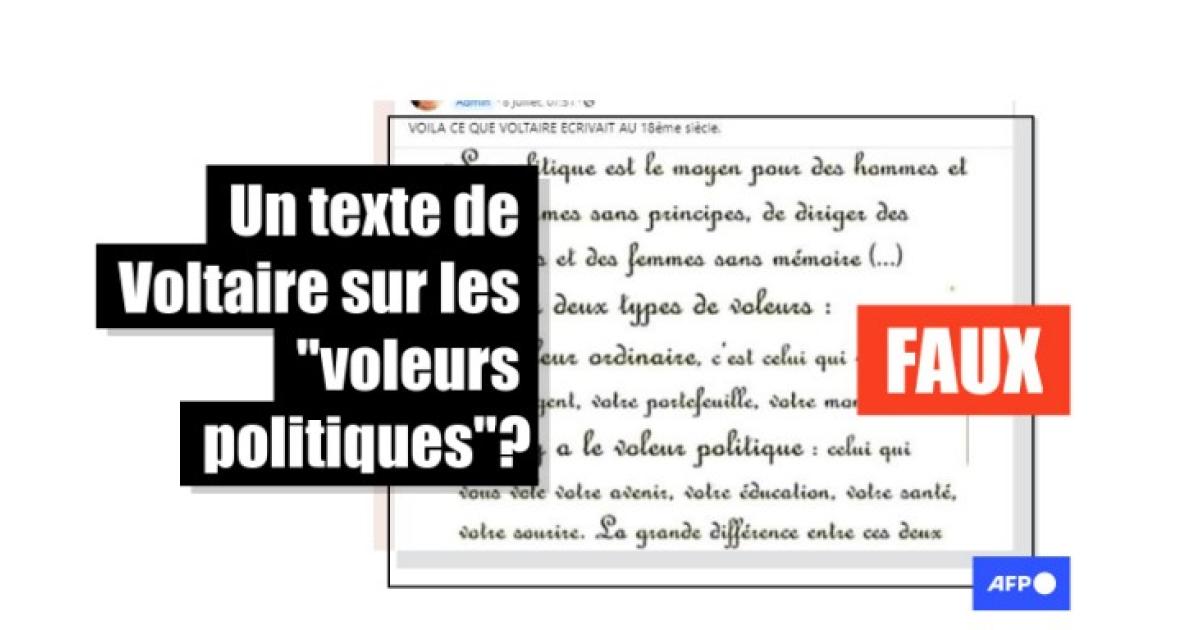 Voltaire qui dénonce les "voleurs politiques" ? Il s'agit d'un texte apocryphe