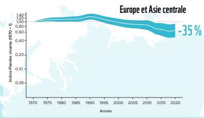 Dans le détail, la seule zone Europe/Asie centrale (4.615 populations et 619 espèces observées) affiche bien sur la période 1970-2020 une baisse importante, de 35%, des populations étudiées. C'est certes moins qu'au niveau mondial, et que la chute vertigineuse de 95% constatée par exemple en Amérique latine. Mais la raison en est que le point de comparaison était déjà bas : dans la zone Europe/Asie centrale, la nature, qui avait déjà souffert depuis la Révolution industrielle, "était déjà fragilisée en 1970, en particulier en Europe occidentale", explique le document.