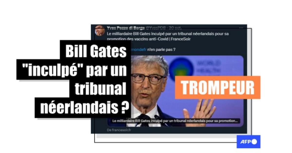 "Le milliardaire Bill Gates inculpé par un tribunal néerlandais pour sa promotion des vaccins anti-Covid", assurent depuis fin octobre des publications virales sur X (1, 2), Facebook et Telegram.