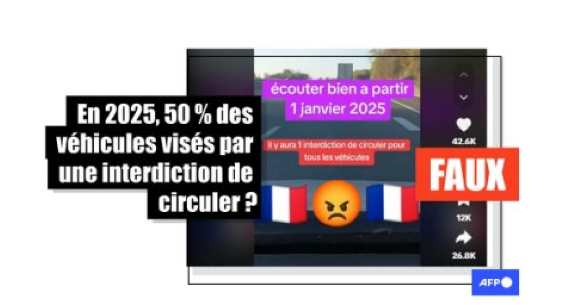 Cette vidéo affirmait qu'en 2025 "une interdiction de circulation pour tous les véhicules diesel d'avant 2011 et essence d'avant 2006 en France" entrera en vigueur dans "47 métropoles", concernant "1 Français sur 2". Un post similaire sur X a également relayé cette vidéo quelques jours plus tard.
