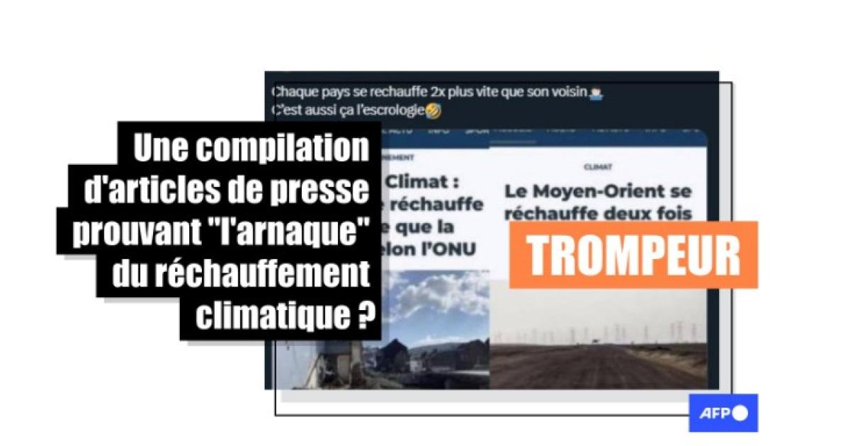 "Le réchauffement climatique ridiculisé en 55 secondes", raillent sur Facebook et X des internautes partageant fin novembre une compilation vidéo d'articles de presse et pages web soulignant que certaines parties du monde, comme la France, l'Australie, la Finlande ou le Canada, se réchauffent "plus vite" que la moyenne.