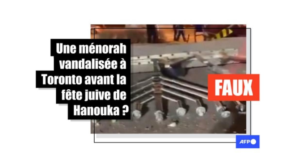 Dans ce contexte, des internautes diffusent sur le réseau social X (1, 2, 3) une vidéo en affirmant qu'elle montre une ménorah, un chandelier à sept branches symbole du judaïsme, vandalisée par des antisémites à Toronto, au Canada.