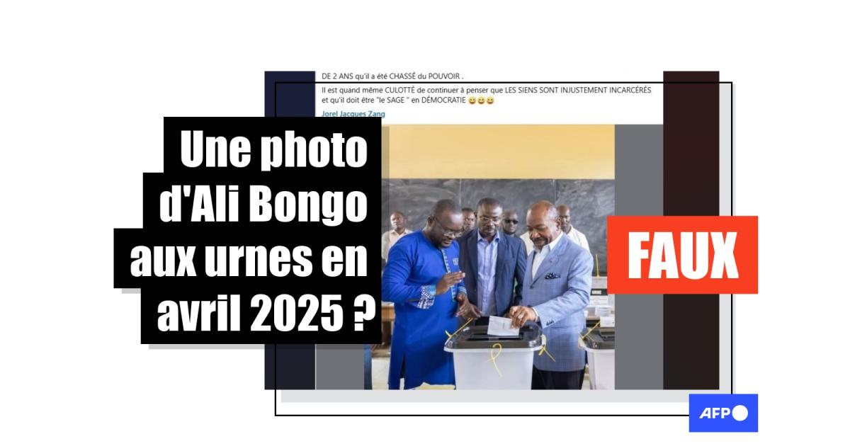 "Ali Bongo Ondimba à sa sortie du bureau de vote ce samedi 12 avril 2025", affirme l’auteur d’un message publié sur Facebook le jour même (archivé ici). La publication est accompagnée d’une photo où l’on voit l’ancien président gabonais en train de glisser son bulletin dans une urne transparente, sous le regard attentif de deux hommes à ses côtés.