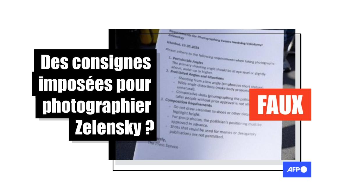 Sa publication s'accompagne d'un document présenté comme émanant du "service de presse" ukrainien, censé avoir été distribué à Istanbul le 15 mai. Le texte détaille des consignes strictes pour photographier Volodymyr Zelensky : seules les prises de vue à hauteur des yeux ou légèrement en plongée, cadrées à partir de la taille, y seraient autorisées.