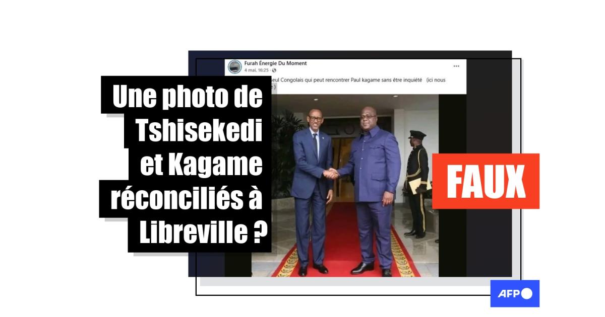 C’est dans ce climat qu’une photo montrant Paul Kagame serrant cordialement la main de Félix Tshisekedi s’est répandue début mai sur Facebook en Afrique francophone (liens archivés ici, ici et ici).