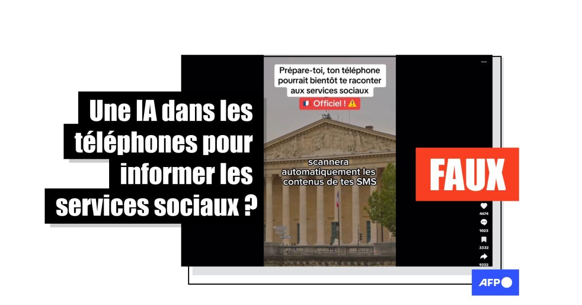 Une vidéo sur TikTok avec plus de 9.000 partages affirme qu'une IA "certifiée" par l’Agence nationale de la sécurité des systèmes d’information (ANSSI) "scannera automatiquement les contenus de tes sms, emails et messages sur WhatsApp, Messenger, Télégram, dès lors que ton smartphone est lié au dossier assurance maladie ou à la CAF".