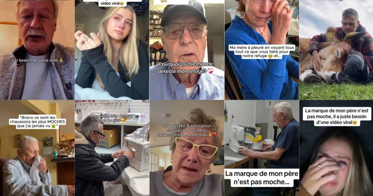 Leurs publications suivent des formats répétitifs : une personne âgée, son conjoint, son enfant ou son petit-enfant, en pleurs face à un commentaire dénigrant leur travail ou exprimant leur désespoir. Puis, viennent les images d'animaux attendrissants, les scènes de fabrication du produit, et enfin, un appel à interagir avec un lien d'achat situé dans la bio (petit texte de présentation situé sous le nom d'utilisateur).