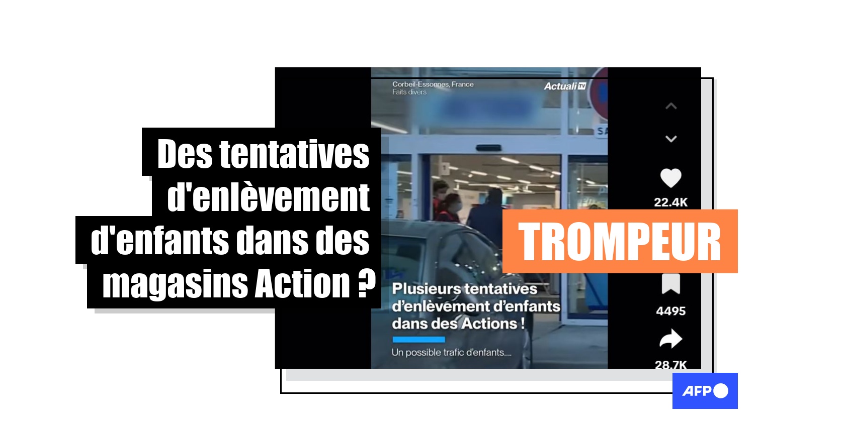 Contacté le 8 octobre 2025 par l'AFP, Action France a assuré qu'il n'y avait pas eu "plusieurs" tentatives d'enlèvement dans ses magasins, contrairement à ce que prétendent les publications virales.